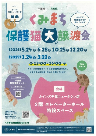 株式会社カインズは、従前より社会貢献事業として自治体等と連携して譲渡会を開催しておりますが、この度千葉県動物愛護センターが同法人と契約を締結したことにより、営業店舗における譲渡会開催が実現することとなりました。